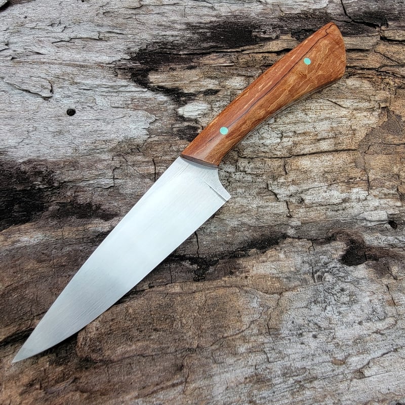 Crafted with a stunning spalted pear wood handle and a sharp 3.5" blade made from 1084 high-carbon steel, this 7" knife cuts like a dream. Perfect for all your everyday kitchen tasks, it's lightweight, durable, and sure to become your "go-to" knife.